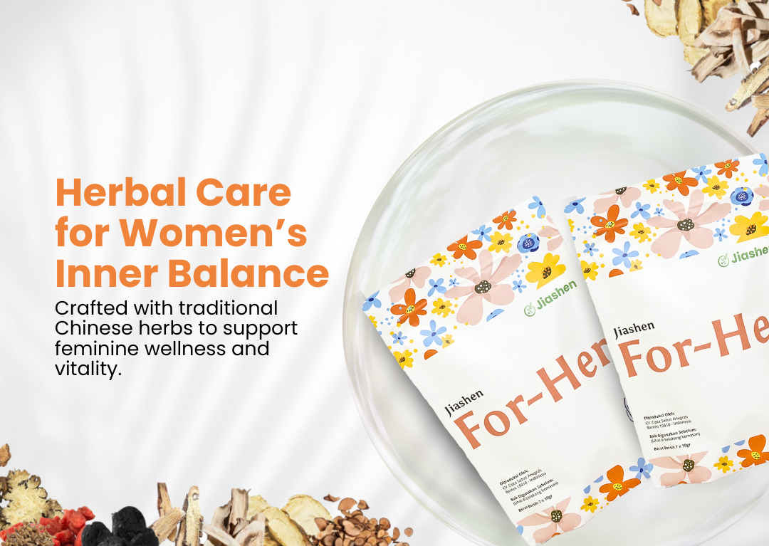 Jiashen For Her: formulated for women to support uterine health, balance hormones, regulate cycles, and improve chances of conception.